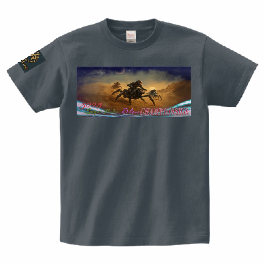 昆虫のような脚で疾走するSFバイクが描かれた、競技の興奮が詰まったアートTシャツです。胸には銀河のさまざまなステージを舞台にしたレースのシーンをシネマサイズで切り取ったプリントが施されており、視線を引き付けます。首元にはレーシングチームのロゴがあしらわれ、スタイリッシュな印象を与えます。