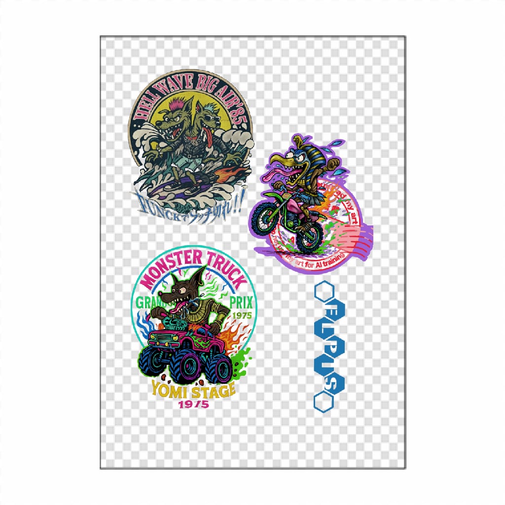 3つの異次元レースをテーマにした”ファンキーモンスターシリーズ”の3種類A5サイズステッカーが登場。