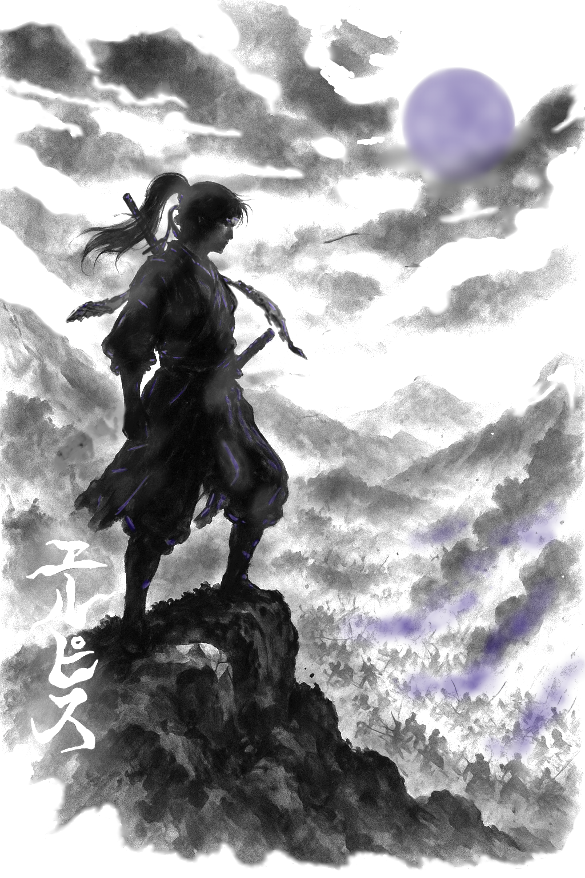 戦場を見下ろす、高台に佇む女忍者。